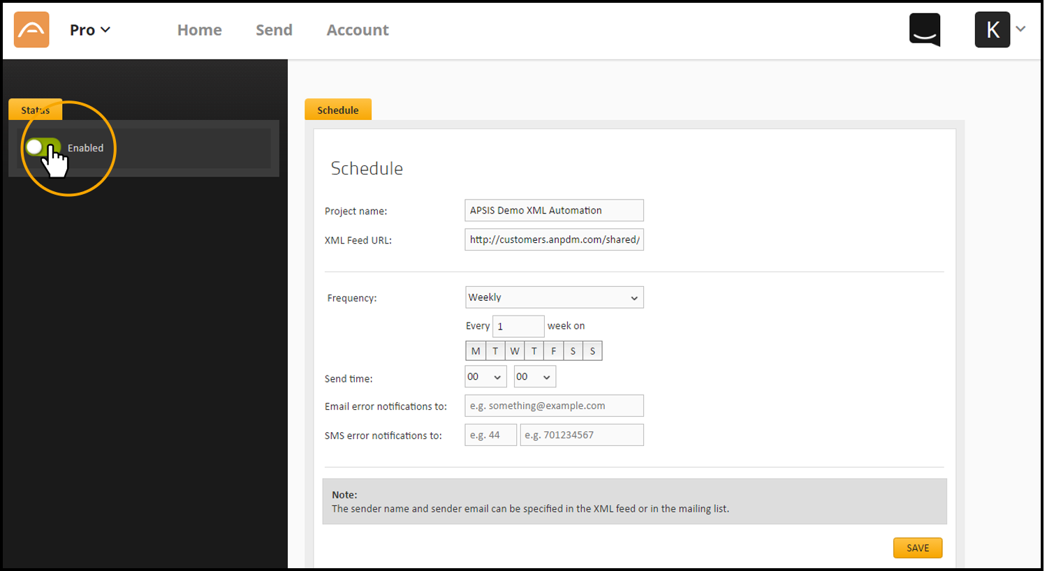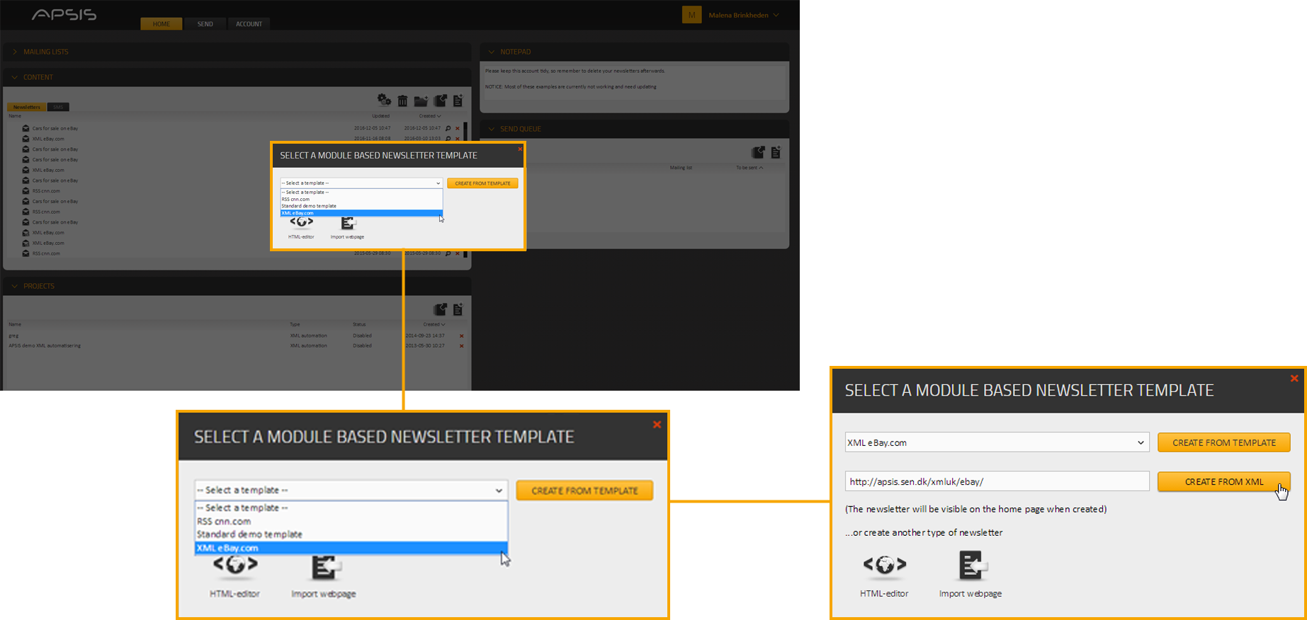 By setting up an XML automation project, APSIS Pro will automatically fetch and build newsletters based on the information and content from the XML feed and send them out regularly according to your XML automation project settings. You will not have to manually create and send out your XML Newsletters every time it’s time to make new send outs.