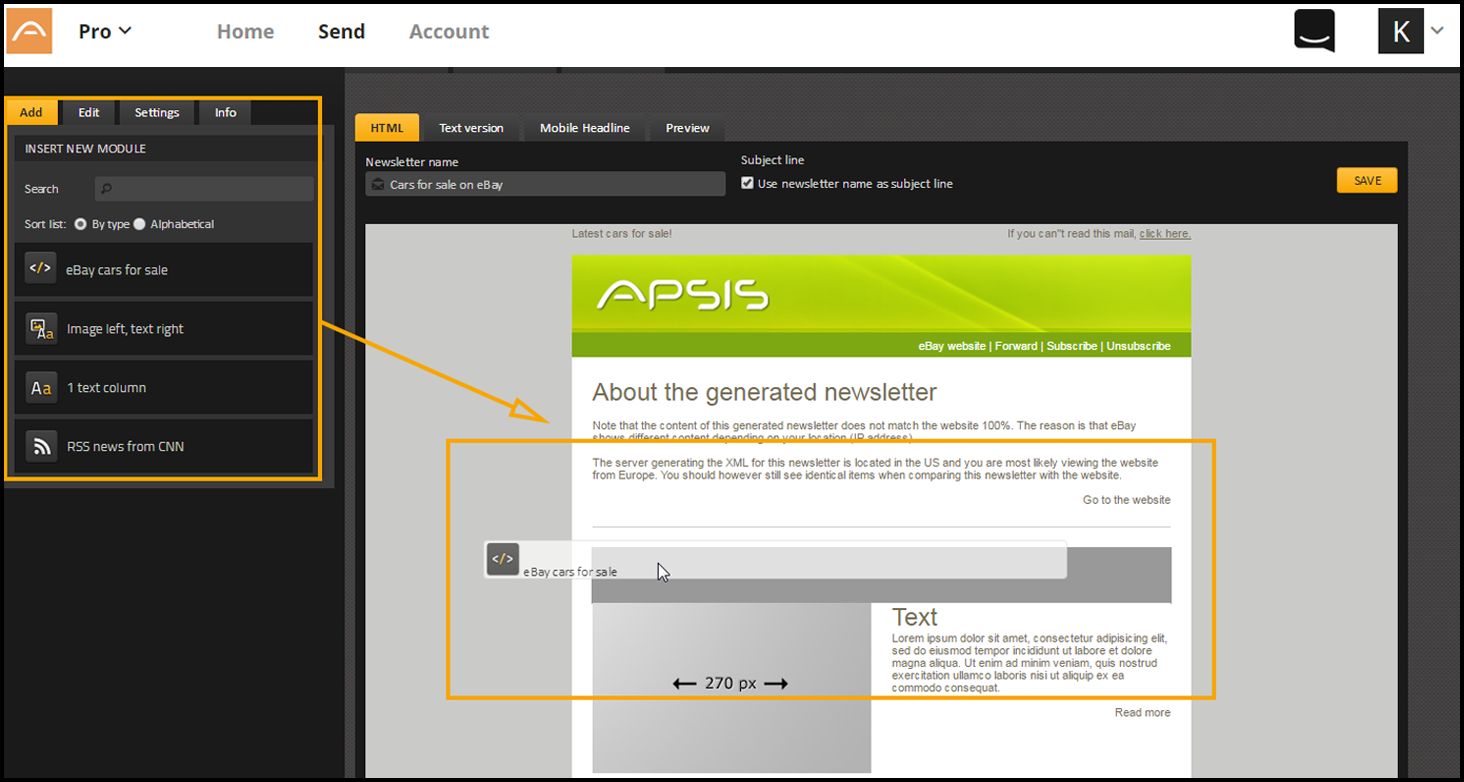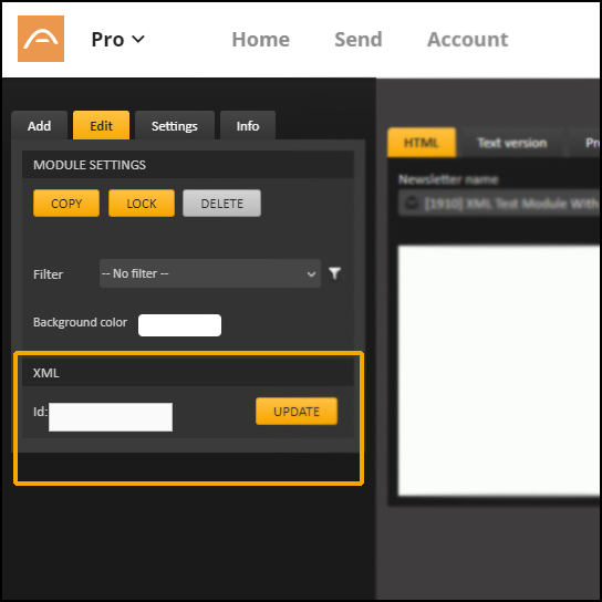 To use XML Modules you don't necessarily need to have an XML customized template, a module based template on your APSIS Pro account is enough. You can add a single XML Module, customized to get specific content from a specific feed to your newsletter. The content of the modules may then be edited just like regular modules.